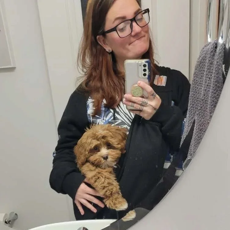 Put your paws together to celebrate our pet of the week, Squiggles! This playful pup celebrated his first birthday this autumn. Squiggles is a Shih-poo mix in a stylishly adorable red color with white patches. He has a dog-sister, Snickers. Let's scroll on down and get to know Squiggles!