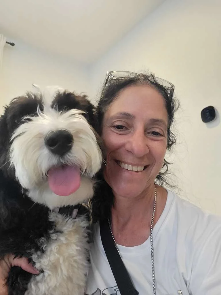 Put your paws together to celebrate our Pet of the Week, Winnie! Have you ever been walking down the street when you bump into exactly the person you're looking for? That's how Winnie and her owner, out with her baby in a stroller and trying to take a good walk with both dog and baby, met our crew. Have your hands full? We'll help you out. It was a perfect match! Winnie is a gorgeous young labradoodle, black with white paws and accents. She's extremely friendly and we love seeing her in the window when we stop for her walks! Keep scrolling to see more about Winnie!